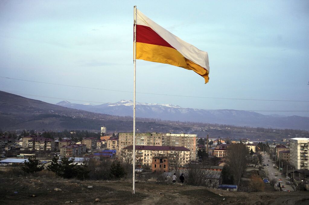 The flag of South Ossetia waves over Tskhinval(i), the capital of the self-proclaimed republic. Photo: Mikhail Mordasov / ANP / AFP