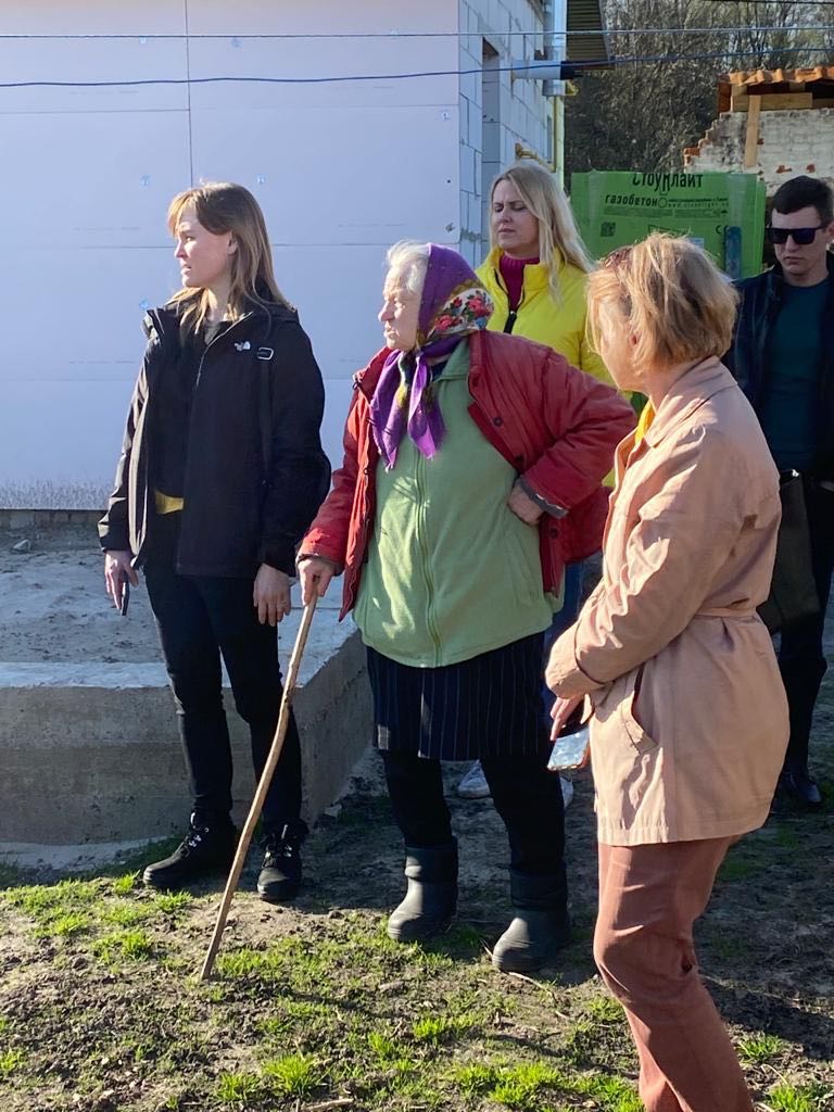 Op Orthodoxe Paasmaandag (17 april) slenterde ik samen met collega's uit Kyiv door een straatje in dit dorp. Een oude vrouw begroet ons: ‘Christos voskres!’ (Christus is herrezen!) ‘Voistine voskres!’ (Hij is waarlijk herrezen!) antwoorden wij haar. We raken in gesprek met deze baboesjka (grootmoeder), die ons naar haar vernielde huis even verderop brengt. Op haar erf zien we hoe uit de as van de door tankgranaten bijna volledig vernielde woning met houten bouwmaterialen een nieuw huisje wordt gebouwd. ‘Krijgen jullie hulp?’ vragen wij. De oude vrouw roept haar nicht te hulp, die binnen aan het werk is. Van haar horen wij dat deze familie vrijwel geen hulp heeft gekregen van de lokale autoriteiten of internationale humanitaire organisaties. Alleen een toevallig voorbijkomend team van het Rode Kruis heeft ze een klein bedrag (ongeveer 5000 euro) gegeven om bouwmaterialen te kopen.