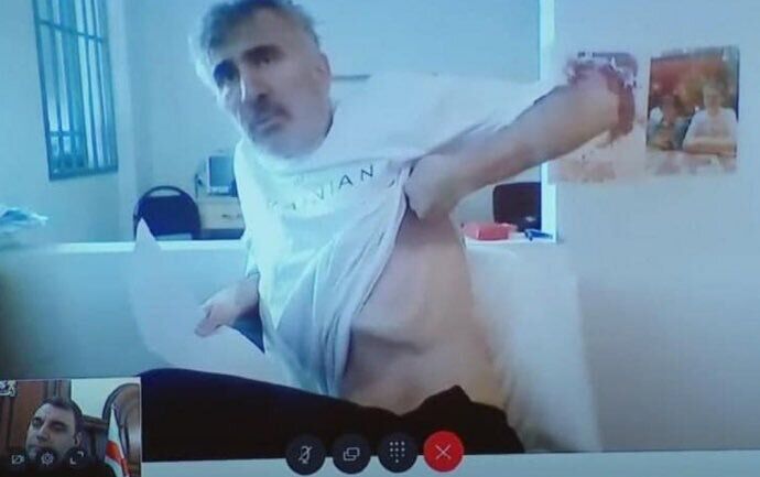 Oud-president Micheil Saakasjvili in gevangenschap. Foto Twitter.
