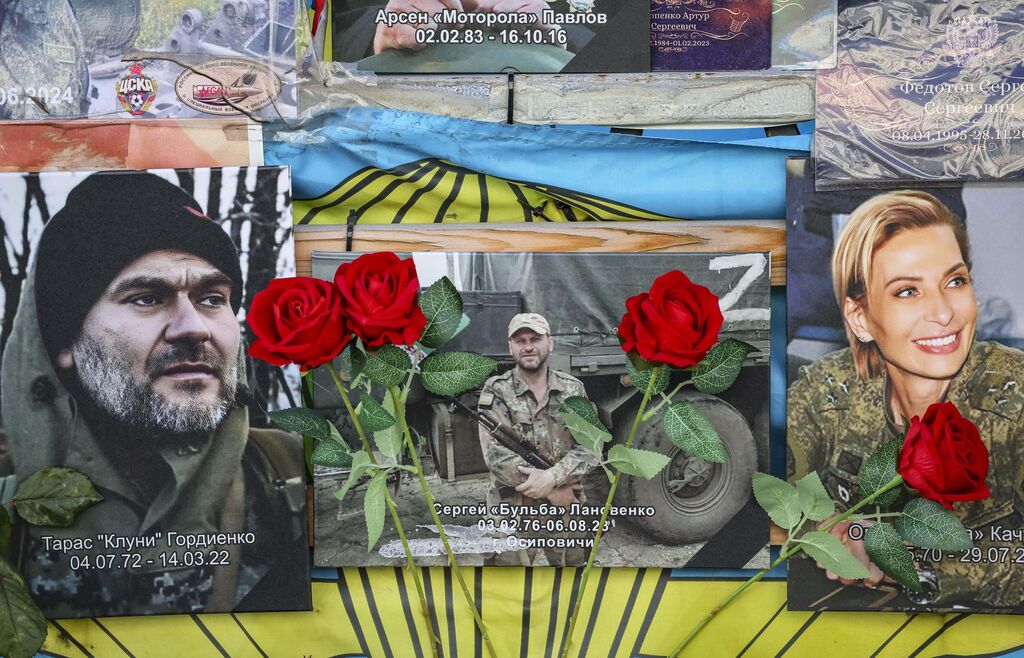 Bloemen bij een gedenkplaats voor soldaten van het Russische huurlingenleger Wagner in Moskou. Foto: Yuri Kochetov / ANP / EPA