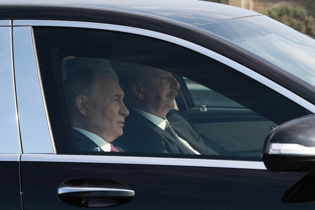 Azerbaijan's President Ilham Aliyev (R) and Russia's President Vladimir Putin (L) drive a car following their talks in Baku on August 19, 2024. Phot: Vyacheslav Prokofyev, distributed by Russian state owned agency Sputnik / AFP / ANP